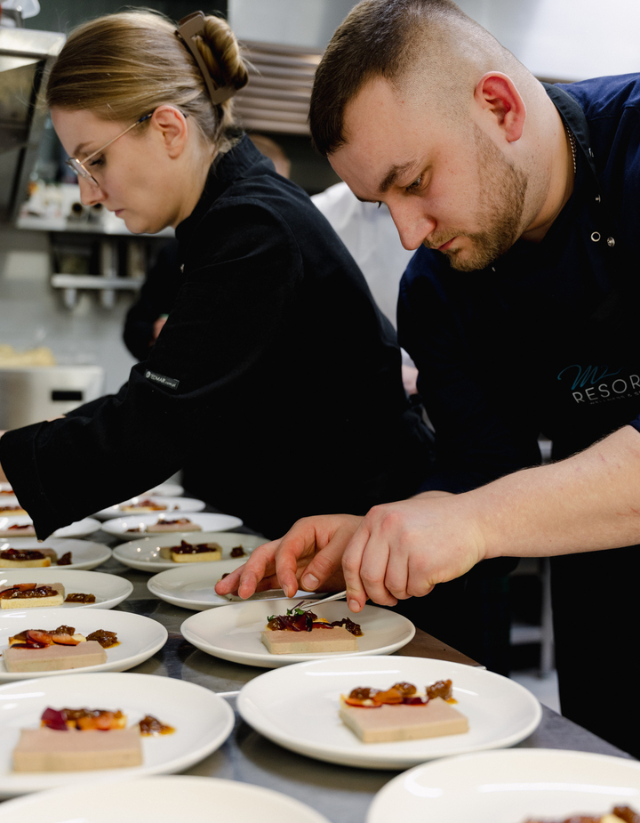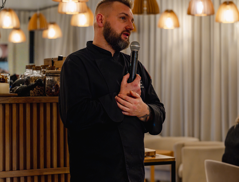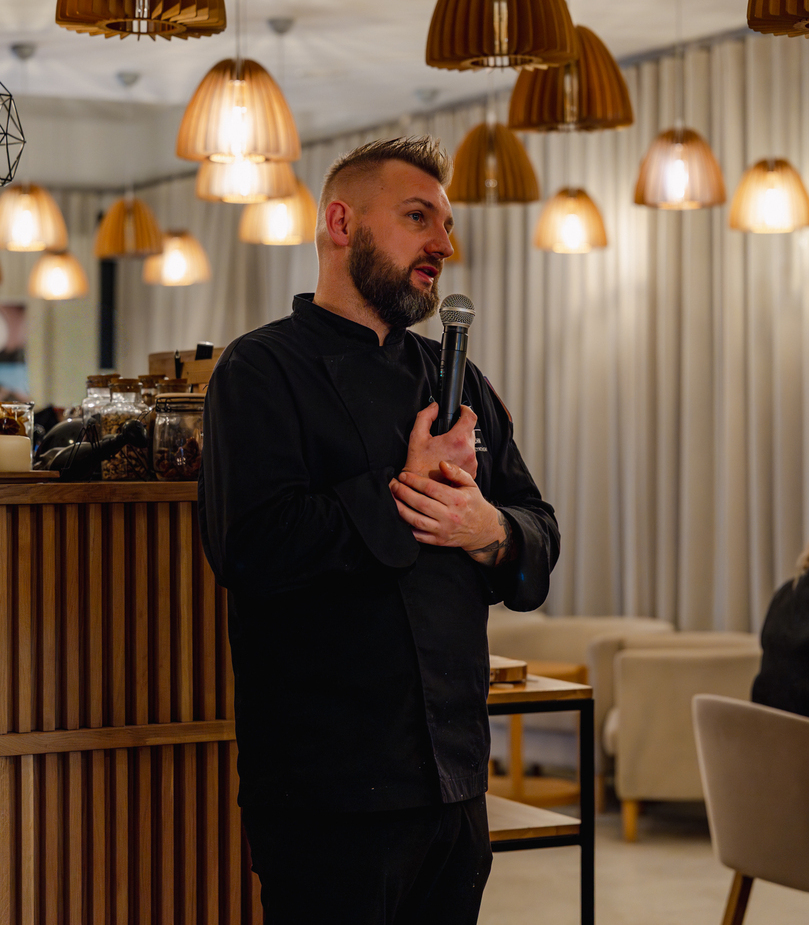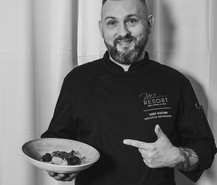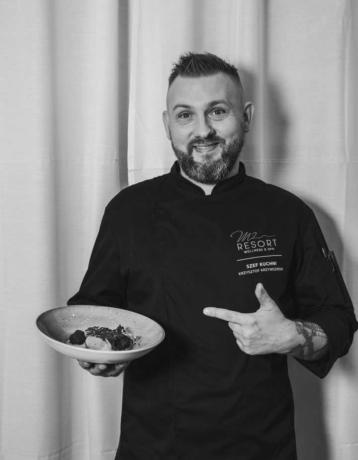 Chef Krzysztof Krzywdziński - twórca autorskiej koncepcji kolacji degustacyjnych w M2 RESORT, w których kulinarna pasja spotyka się z odwagą w poszukiwaniu nowych doznań smakowych. Pomysłodawca tematycznych uczt, realizowanych we współpracy z zaproszonymi Szefami Kuchni, nadający każdemu wydarzeniu spójną wizję i wyjątkowy charakter. Jego autorska kuchnia opiera się na niekonwencjonalnym łączeniu smaków, najwyższej jakości składnikach i precyzyjnej technice. Każde menu jest unikalną interpretacją inspiracji, sezonu i emocji — zaprojektowaną tak, by zaskakiwać, angażować zmysły i pozostawać w pamięci na długo.